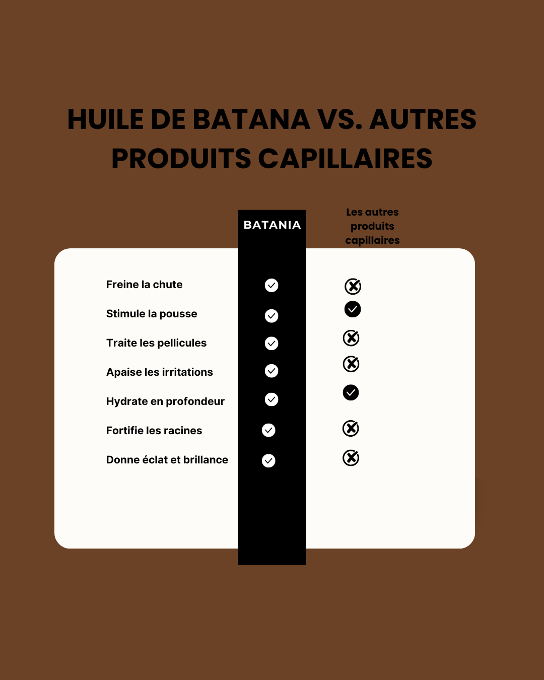 Oui. L’huile de Batana est naturellement riche en oméga-9, oméga-6 vitamine E et antioxydants, ce qui lui permet de freiner la chute à la racine, de renforcer les follicules et de préparer la repousse.